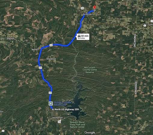 Head northwest on US-259 N toward Smithville - 29.5 mi