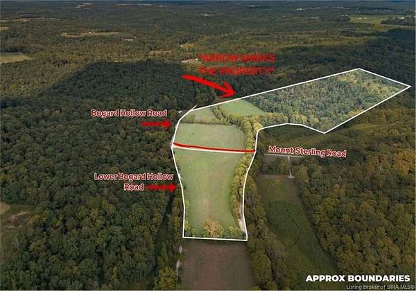 Hunters Dream Property & build your home later...Discover the ultimate in privacy and potential with this remarkable 45.5+/- acre parcel of vacant land (SURVEY PENDING). Tucked away from the hustle and bustle yet ONLY 12 minutes to INTERSTATE 64 at exit #92 , this secluded property offers a rare opportunity to own a large tract of land with endless possibilities. Whether you're dreaming of building your dream home, place a hunting cabin/tiny home, create a recreational getaway for camping & relaxing, or have your own private retreat...this land provides the perfect blank canvas. Surrounded by natural beauty, the property features gently rolling terrain, mature trees (this land has not been timber harvested in over 20 years), and abundant wildlife-making it ideal for hunting, hiking, or simply enjoying the peace and quiet of nature. NN HOA, NO RESTRUCTIONS, and CREEK bordering the land. This is your chance to design the lifestyle you've always wanted. Don't miss out on this unique opportunity to secure your own private retreat. There is APPROXIMATELY 15 ac tillable, 29 ac wooded/timber, approximately 1,821 ft of road frontage. Schedule a visit today!