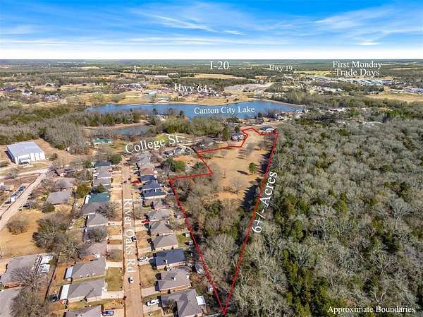 Rare opportunity to own acreage inside the city limits of Canton. Located on College Street just east of River Oaks Road, this property offers road frontage with a deep, private setting that stretches toward Canton City Lake. Whether you are an investor looking for future development potential or a buyer wanting to build a secluded custom home while staying close to town, this tract delivers flexibility. Surrounded by established neighborhoods, yet heavily treed toward the back, the land provides a mix of open space and natural privacy. Utilities are available at the street. This property is Just minutes from downtown, schools, and First Monday.