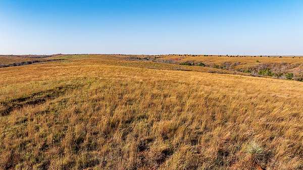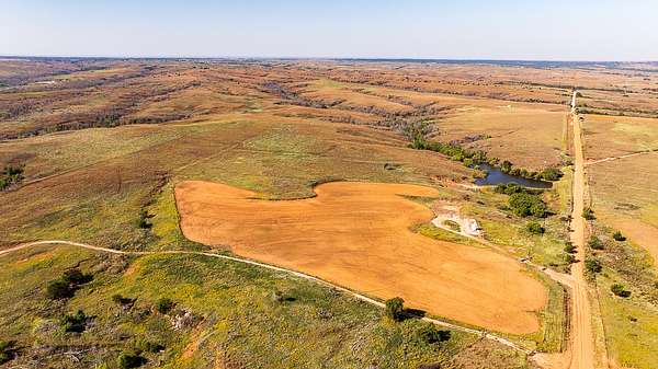 Tract 12 - 440+- Acres | Woodward County, OK. An outstanding large-acreage tract on the north end of the ranch featuring mixed-grass prairie, two large draws with dense cover, two spring-fed ponds, and an 11+- acre tillable field well suited for wheat pasture or food plots. Offered at public auction as part of The Kee Ranch on March 31, with anticipated opening bids of $1,000 - $1,500/acre.