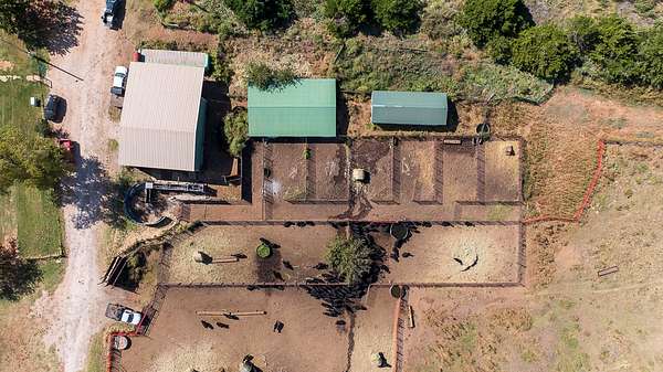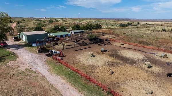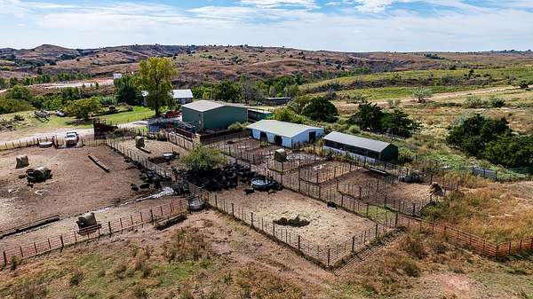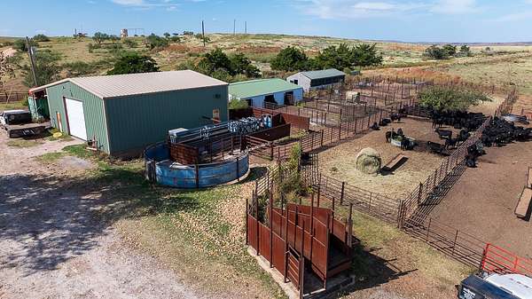 Tract 6 - 53+- Acres | Ranch Headquarters. This tract includes the main ranch headquarters anchored by a well-maintained 2,236+- square foot, 3-bedroom, 2-bath residence featuring three living areas, a stone fireplace, a newly installed roof, a Generac backup generator, and sweeping views of the ranch. Supporting improvements include a 40' x 40' insulated shop, 32' x 48' calving barn, additional barn, and a complete set of working pens with alleys, tub, and load-out. Offered at public auction as part of The Kee Ranch on March 31st.