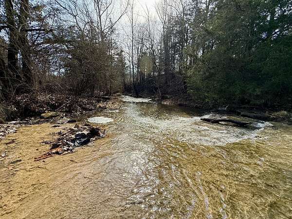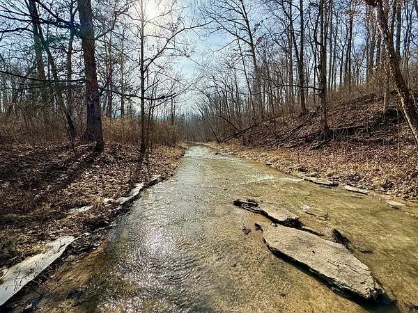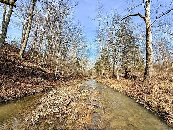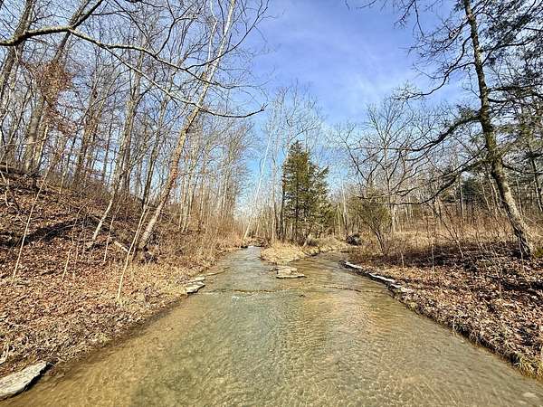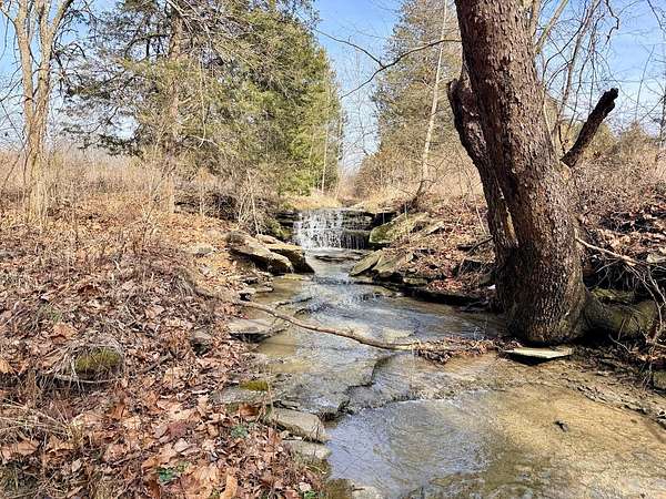 Scenic 46.7997-acre property offering a rare combination of natural beauty, privacy, and build potential. The property features approximately 656 feet of road frontage with city water & electric available at the road. A large, scenic creek with multiple waterfalls runs through the center of the property, creating a truly special setting. The creek includes natural flat rock shelf crossings, allowing easy access across several areas. The land offers a desirable mix of open pasture and mature hardwood timber, including oak and hickory, with abundant wildlife activity throughout. A beautiful building site overlooks the creek & surrounding valley, providing an ideal location for a future home, retreat, or recreational property. Rolling terrain, wooded cover, & water features make this property well suited for outdoor enjoyment, hunting, or a private country escape. Properties with this level of scenic beauty, usable acreage, water features, & overall setting are increasingly hard to find!