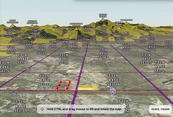 GPS COORDINATES NW Corner: 40.6111, -116.8413; NE Corner: 40.6109, -116.8389; SW Corner: 40.6041, -116.8413; SE Corner: 40.6041, -116.8389;