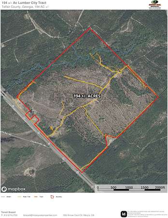 This 194+- acre tract is located in Telfair County, Georgia, approximately 3 miles outside the city limits of Lumber City. Offering excellent highway frontage, the property provides easy and convenient access while maintaining a private, rural setting.