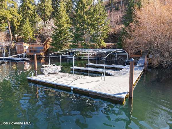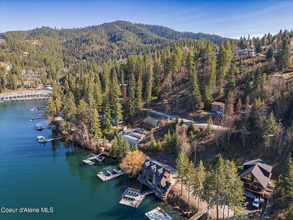 Tucked along the sought-after shores of Hayden Lake, this rare 0.22-acre waterfront lot offers an incredible opportunity to build your custom lake retreat. With approximately 75 feet of deep-water frontage, an existing double-slip dock, and sweeping mountain and lake views, this property checks all the boxes. The sloped, wooded setting provides a sense of privacy while still offering a prime build site positioned to capture the views. Located on the quiet southwest end of the lake, you're just minutes from downtown Hayden, yet it feels peaceful and tucked away. Utilities are available, and opportunities like this on Hayden Lake are limited, making this an ideal setting for a full-time home or seasonal getaway.