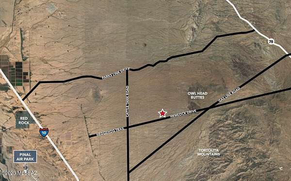 Marana Rd Exit to frontage road to right on Missile base Rd to left on Estancia rd. To right on Davis Ranch Rd to left on Cattle Tank Rd, to right on Hemlock past Lansdown. Look for signs. Ask Broker for google pin.