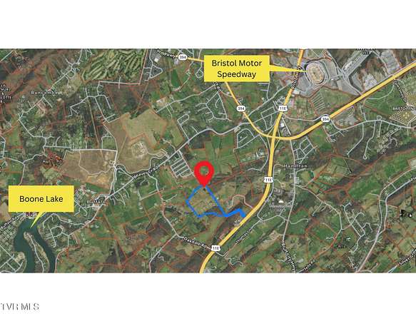 Est $6,437/mo70 Acre Development Opportunity at a great price! This property is situated between Bristol and Johnson City, near Bristol Motor Speedway and Boone Lake. Convenient to all of the Tri-Cities. Property has been used as a campground with electric and water throughout the site. It has Gentle rolling topography, beautiful long range views, two ponds, and possible access through Hendrickson Lane. Currently zoned A1 with the possibility to rezone for residential development. Please contact agent for showing, please do not trespass without permission. Church building and parcel not included.