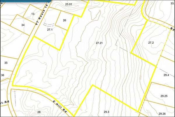 This stunning piece of property is 44.6 acres of undeveloped land with ~6 acres of US Route 14 frontage that is zoned industrial. This land has predominantly sandy soil and boasts a lot of opportunity here for future owners. Industrial land has potential to be a PUD, Storage Units and more. Residential land would be the perfect location for one or multiple houses, the perfect location for to build your dream home(s) on. With some tree clearings, mountain views could be achieved. Property is located at corner of US Route 14 and East Hill Road. Own your own piece of paradise in Vermont and build your dream! Size: 44.6 Acres. Features: Corner Lot, Country Setting, Field/Pasture, Major Road Frontage, Walking Trails, Wooded