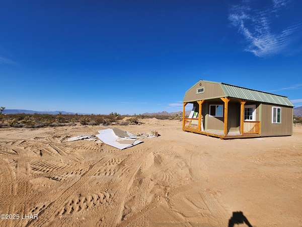 GC SAYS WILL BE READY 12/14. Check out this off-grid homebase with VIEWS in the AZ desert! 1 acre fenced with 296 sq ft Graceland lofted cabin(leased), a matching 6 X 12 storage shed(leased), SEPTIC, WATER HAUL, SOLAR, propane hookups. 1050 gal septic, 2,500 gal water tank and pressure pump, EG4 6,000xp expandable solar system. Inside is being finished by ROC licensed contractor with plumbing, drywall, insulation, electrical, LVP flooring, cabinets, full bath(shower, no tub), food prep area(minus appliances), mini split, washer/dryer hookups(W/D not included), tankless propane water heater, paint. Both lofts will have detachable ladder access. Bathroom will have sliding barn door. Shed will contain solar batteries and storage area. NO HOA, RV friendly, livestock and horses welcome. Easy access and panoramic mountain views. Everything will be setup for you to come and enjoy quiet desert weekends or snow birding. For piece of mind, we are offering a 1 year membership to AirMedCare emergency medical air transport, just in case. The 1 acre fenced lot has plenty of space for future development of garages, carports, RV hook-ups for friends. Everything you need for rural off-grid living. Assume the leases for the sheds from Graceland for $750/mo for 72 month term, payoff whenever you like. We can also pay off the leases for the sheds at close and you can purchase the property for $93,000. Pics updated as it progresses. OWNER/AGENT, sellers are AZ Broker & licensee