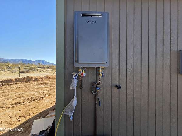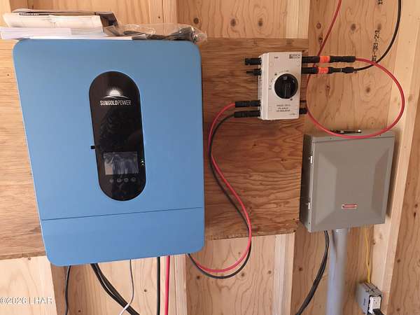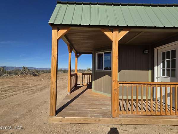 Check out this off-grid homebase with VIEWS in the AZ desert! 1 acre fenced with 296 sq ft Graceland lofted cabin, a matching 6 X 12 storage shed, SEPTIC, WATER HAUL, SOLAR, propane hookups. 1050 gal septic, 2,500 gal water tank and pressure pump, EG4 6,000xp expandable solar system. Inside has been finished by ROC licensed contractor with plumbing, drywall, insulation, electrical, LVP flooring, cabinets, full bath(shower, no tub), food prep area(minus appliances), mini split, washer/dryer hookups(W/D not included), tankless propane water heater, paint. Both lofts have detachable ladder access. Bathroom has sliding barn door. Shed contains solar batteries and storage area. NO HOA, RV friendly, livestock and horses welcome. Easy access and panoramic mountain views. Everything will be setup for you to come and enjoy quiet desert weekends or snow birding. Owner may consider carry with 30k down. For piece of mind, we are offering a 1 year membership to AirMedCare emergency medical air transport, just in case. The 1 acre fenced lot has plenty of space for future development of garages, carports and RV Hook-ups. Everything you need for rural off-grid living. OWNER/AGENT.