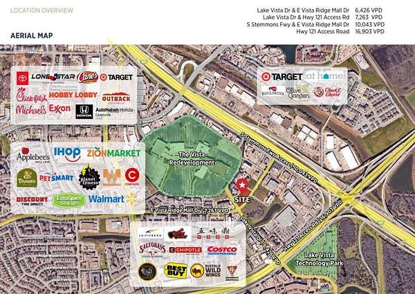 Legacy Park at Vista Ridge is a boutique luxury office condominium development in Lewisville, Texas, featuring ten approximately 3,000 SF, free-standing office condos tailored for professional users. Owners benefit from flexible occupancy options, making the property ideal for both owner-users and investors seeking long-term appreciation or strategic exit opportunities. Situated within a rapidly evolving mixed-use corridor, the project offers exceptional visibility, strong traffic exposure, and convenient regional access. The development is further strengthened by major nearby projects, including The Vista, a large-scale mixed-use redevelopment, and Lake Vista Technology Park, reinforcing the area's growing commercial momentum and long-term value.