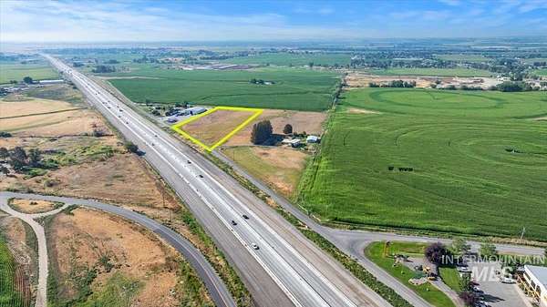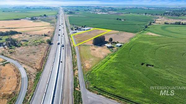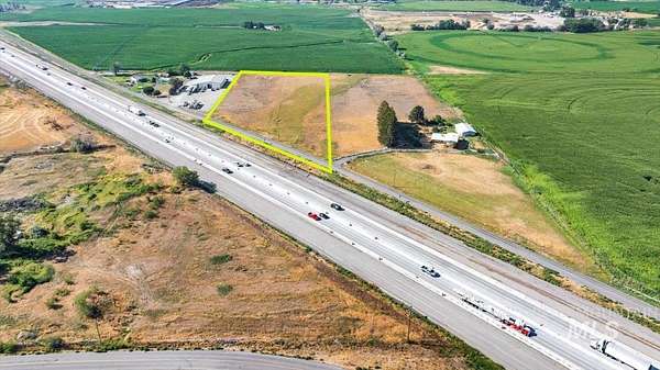 Est $8,750/mo5 acres of level bare land with freeway frontage, excellent access being located only 1/2 mile east of the south side of the new roundabout interchange on Exit 168, I-84 at Jerome. This is a very fast growing area. There is a second parcel (see MLS#98954794), 8.89 acres joining it also available. This parcel is in the county, but in City impact area. City limits and full city services and 3 phase power is across the road diagonally to the northwest corner of the adjoining parcel. Natural gas in in the area. High density retail zone is the city zoning next door. High freeway visibility. Build to suit may be possible.