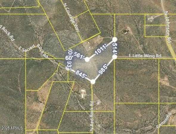 Little Wing and Sacred Rock Directions: Interstate 10 to Dragoon Road Exit 318. Go East 2.8 miles to Red Rock Road. Go North just over 6/10 of a mile to the Y in the road. Sacred Rock and Little Wing Roads border the parcel. MAP IN PHOTO