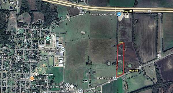 11+ Acres of Prime Land in Honey Grove! Don't miss this rare opportunity to own over 11 beautiful acres in the fast-growing city of Honey Grove! Conveniently located right off State Hwy 56 with easy access to US Hwy 82. This property features two gated entrances (south and west sides) for flexible access and is fully fenced for privacy and security.