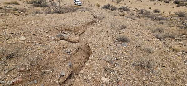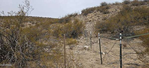 This mountain has your back! Forty two point three one (42.31) acres has a great area for a pad and rises to the top of the hill where you can see I -40 south east to Aquarius Mountains and north east to the Cottonwood Mountains. There are two access roads, only Tin Mountain Road is passable and passes through a wash. Marble road must be graded to make it passable. There are beautiful rocks on the top of the hill facing the Hualapai Mountains. 3400 to 3740 foot elevation. Power lines at the corner of the parcel. No HOA, no CCR's. This is rough and ready. Broker will assist with locating.