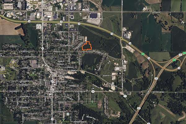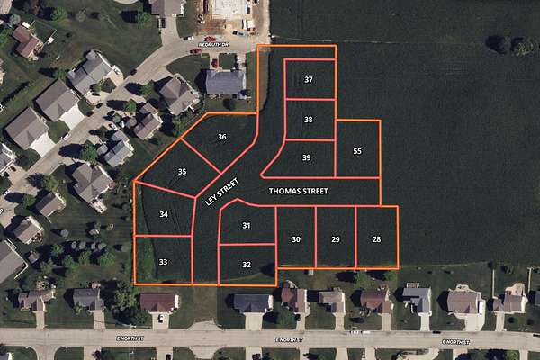 Positioned on a scenic hilltop overlooking Dodgeville, this approximately 5-acre parcel presents a residential development opportunity. A conceptual plat outlines potential for up to 13 lots, ideal for a developer or builder seeking to meet the area's strong housing demand. The property is accessible from E North St. to the south and Redruth Dr. to the north.All essential utilities are already nearby; electric, water, natural gas and sewer are available at the roads. An existing stormwater retention pond located south of E North St. provides runoff management for the site. The location has easy walking access to Harris Park and quick connections to Highway 18 and 151 for commuting.