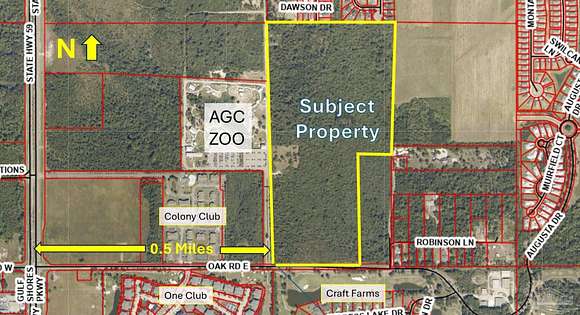 72 +/- Acres of Prime Real Estate on Oak Road East, in Gulf Shores, AL - Great Development Potential. Discover an incredible investment opportunity in Gulf Shores with this expansive 72-acre parcel located on Oak Road East w/ 940' on Oak Road E. This versatile property offers immense potential for residential subdivision development, mixed-use development, or a PUD. It's perfectly situated to take advantage of the area's growing demand for housing. Currently zoned agricultural. Location: The parcel is located 0.5 miles East of Gulf Shores Parkway (Hwy 59) Conveniently located just minutes from Gulf Shores' beautiful beaches, shopping, dining, and recreational amenities. Access: Easy access to major roadways, making it a desirable location. This property is a blank canvas for visionary developers to create a thriving community in one of the most sought-after areas along the Gulf Coast. Whether you're considering a single-family subdivision, townhomes, or a mixed-use concept, this parcel provides endless possibilities. Photography/media reflects condition of property at the time of listing* Don't miss out on this rare opportunity to secure prime acreage in Gulf Shores.