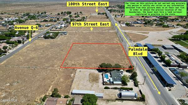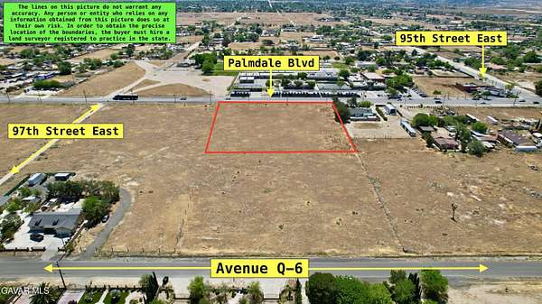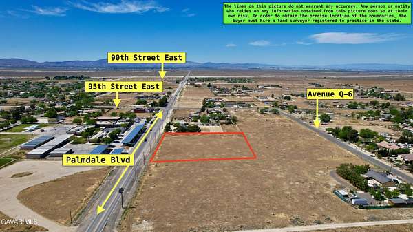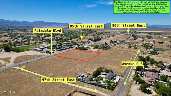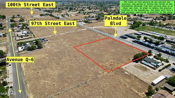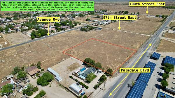 Go North on 14 fwy, exit Palmdale Blvd turn right on Palmdale blvd, Go East on Palmdale blvd, from Palmdale Blvd and 95th Street East, drive east approx. 800 feet to property on the north side of Palmdale Blvd.
