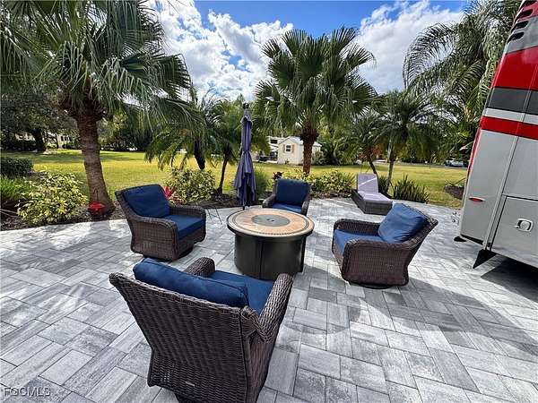 Lot 63 Short walk to the pool, space for the pups, and a backyard that wows, this lot checks all the happy boxes. Wake up with the sunrise and ease into your day, this a beautifully positioned back-in lot designed for relaxed resort living. From the moment you arrive, tropical landscaping, elegant pavers, and a spacious patio set the tone, this is a place meant for slow mornings, sunny afternoons, and peaceful evenings under soft, glowing lights that make the entire space feel a little magical. The patio is the heart of the lot, offering plenty of room to entertain friends, unwind with a book, or simply soak up the Florida sunshine. A bathroom with a shower adds everyday convenience, making this property as comfortable as it is charming. With the pullout sofa its ideal for welcoming guest space for friends and family visiting for a sunny stay. Nearby common areas provide extra space to stroll with your furry friends, explore, or just enjoy the open, airy feel that makes RiverBend so special. At RiverBend Motorcoach Resort, there's always something to do and always a reason to get out and enjoy it. Three Clubhouses, Countless Ways to Play. More Fun Than Any Other Resort! Set along the Caloosahatchee River, this is the kind of place where mornings can start with sunshine and river views, and the best part of the day is choosing between joining the fun or soaking in the serenity. From sunrise to sunset, life at RiverBend Motorcoach Resort is anything but ordinary. Lounge by the heated pool, soak in one of two hot tubs, or sip a cocktail at the cabana bar while the day unfolds at your pace. Step into one of three active clubhouses for endless ways to stay engaged, hit the putting green, challenge friends to bocce or shuffleboard, or get moving with a workout or ping pong match. When it's time to socialize, the fun takes center stage: lively Tap Room trivia, thrilling Texas Hold'em, and bourbon and cigar nights. Card games, bunco, bingo, dancing, and billiards ensure there's always something happening, because here, ordinary just doesn't exist, RiverBend is where unforgettable experiences come to life. For those who crave the outdoors, adventure is always just steps away. Stroll across charming footbridges that span sparkling lakes and watch herons, ibis and turtles along the way. Launch from the boat dock for spontaneous river escapes, or enjoy the breathtaking views from the water. Creative spirits will love the Creations Clubhouse, while anyone seeking peace can simply soak in the serene surroundings. At RiverBend, there's something for everyone, whether you're chasing excitement, connection, or pure relaxation. At RiverBend, every day feels like vacation, whether you're all in, or happily doing nothing at all. Lot 63 truly offers the best of RiverBend living, comfort, community, and a vibrant lifestyle wrapped in a beautiful setting. Come experience it for yourself and see how easy it is to start living the life you've been dreaming about.
