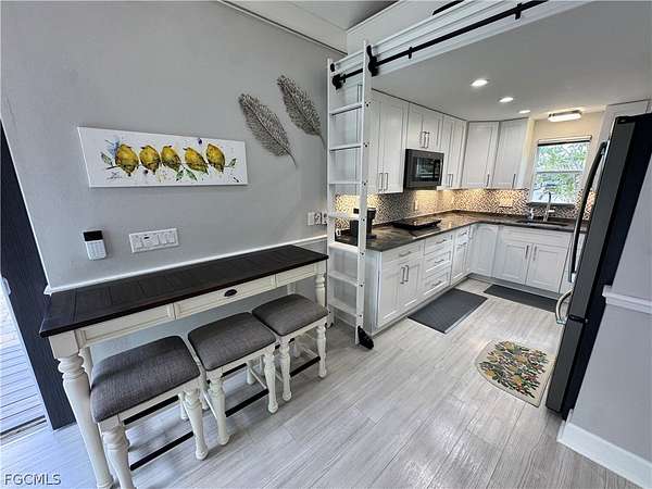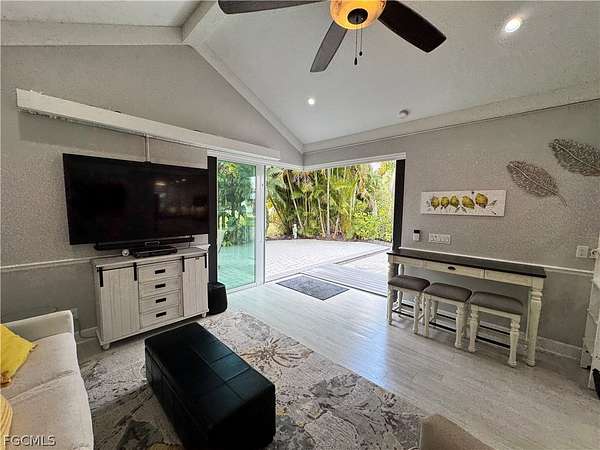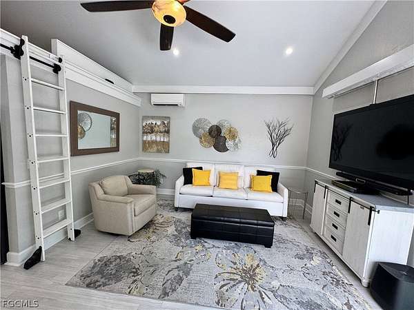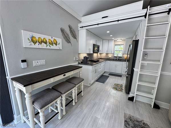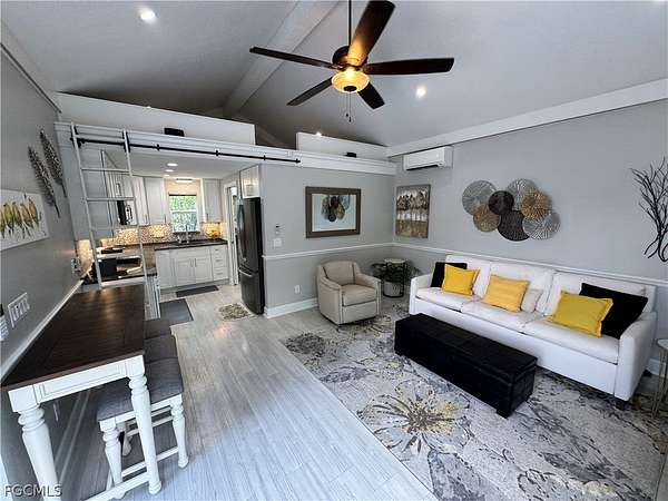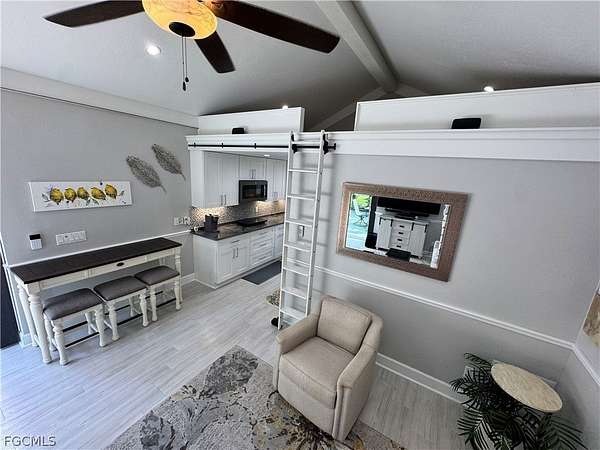 Lot 61 A Tropical Delight with Sunshine, Space & Florida Charm, Step into the wow factor the moment those corner sliding doors glide open and the sunshine pours in. That bright, happy Florida feeling? It's immediate. This thoughtfully designed coach house welcomes you with airy living space and a corner kitchenette equipped with everything you need to cook up fresh seafood dinners or casual brunches before a day in the sun. The bathroom is spacious, bright, and offers plenty of storage. Climb the charming library ladder to the loft, a cozy retreat for guests or extra storage space. And here's the best part, it's completely turnkey. Everything you see stays, making this an effortless move-in decision. Big bonus? The golf cart is included. That means sunset golf cart rides under mossy oaks, cruising down to the river, waving to neighbors, and soaking in those famous painted Florida skies, soft pinks, fiery oranges, and golden reflections dancing across the water. Location is everything, and Lot 61 delivers. You're just steps from the clubhouse, pickleball courts, and dog park. Plus, this property backs up to a large grassy common area adored by our four-legged residents, giving you a park-like, private feel right in your backyard. It's secluded, peaceful, and perfect for outdoor entertaining whether you're hosting friends on the front patio or relaxing on the back lanai. When it's time to socialize, head down to the River Clubhouse for poolside afternoons at the cabana bar, refreshing dips in the resort-style pool, relaxing hot tubs, live music, themed dinners, trivia nights, bocce, Zumba, line dancing, Texas Hold-Em, and so much more. The lifestyle here is active, welcoming, and full of energy. And just beyond it all flows the peaceful Caloosahatchee River, perfect for scenic walks beneath moss-draped oaks, boat watching, and sunset strolls that remind you why Florida living is truly something special. Lot 61 isn't just a property, it's sunshine, palm trees swaying, friendly waves from passing golf carts, painted skies, tropical breezes, and that unmistakable Florida lifestyle wrapped into one irresistible opportunity.