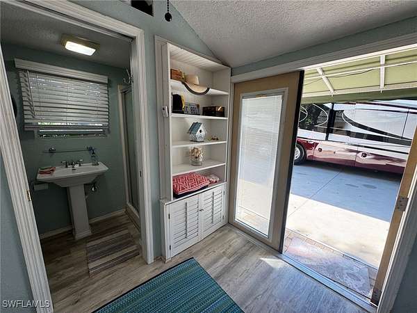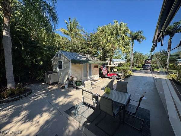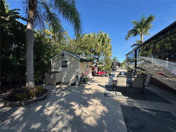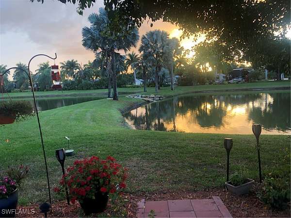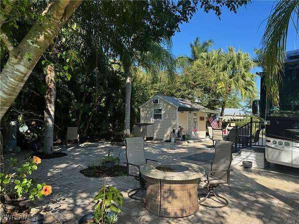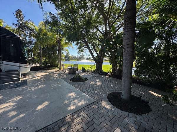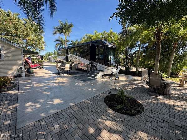 Lot 11 - A Shady Waterfront Paradise for Your Class A Motorcoach. Discover the essence of Florida living with this dreamy Class A Motorcoach lot nestled in the lush, welcoming community of RiverBend. Lot 11 offers the perfect combination of privacy, luxury, and natural beauty, with features that make every day feel like a getaway. This enchanting property is shaded by a majestic banyan tree, providing a cool and comfortable retreat while adding to its serene charm. The extended patio leads to a grassy peninsula overlooking two tranquil lakes. The sparkling fountain offers a picturesque view, whether under the Florida sun or glowing in the moonlight. The beautifully appointed coach house is both functional and stylish. Inside, you'll find a kitchenette with a refrigerator, a stackable washer and dryer for convenience, and a neutral light-blue interior complemented by natural wood-look flooring. A modern bathroom features a pedestal sink and an etched-glass shower door, while creative storage and display areas make it easy to showcase your treasures. Outdoor living is a breeze, with a dining table and seating for six under the stars or a cozy firepit for gathering with friends. Whether you're relaxing with a good book or entertaining guests, this property is designed to suit every mood. RiverBend Motorcoach Resort offers an unparalleled lifestyle. Cruise through this golf cart-friendly community along the scenic Caloosahatchee River, where pets are part of the family, and a private boat ramp awaits for spontaneous river adventures. The resort-style amenities include an expansive pool, year-round pickleball courts, and a cabana bar for relaxing in style. The River Clubhouse is a serene retreat with captivating river views, while the Pool Clubhouse offers a lap pool, hot tubs, and endless opportunities for relaxation. The community comes alive during the vibrant winter season with a full calendar of activities, from billiards and bingo to R/C clubs and model train watching under the shade of majestic oak trees. With bocce, shuffleboard, putting greens, and an exercise room, there's truly something for everyone. This exceptional lot combines the best of nature, community, and resort-style living, creating a one-of-a-kind retreat you'll never want to leave. Make Lot 11 at RiverBend your Florida sanctuary today! Investment opportunity, please ask agent about rental dates for 2025 to 2026 season.