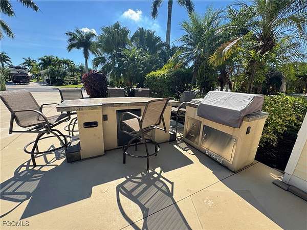 Lot 69, If you are searching for a lot that truly makes a statement, look no further than this exceptional corner property. With common space both beside and behind you, this lot offers a rare level of privacy while still being surrounded by lush green grass that flows around the side and back of the property. The expansive outdoor living area is ideal for entertaining or simply soaking up the Florida lifestyle all winter long. The two-piece outdoor kitchen is a showstopper, complete with a built-in grill, refrigerator, and seating for six at the bar, perfect for hosting friends and neighbors. The coach house provides versatility, with enough room for a cozy couch for afternoon reading or a functional office setup. Washer and dryer hookups are already in place, and a stylish water closet with sink adds both comfort and convenience. Just steps away, the walking bridge leads you directly to the resort's vibrant pool complex, where you can float the afternoon away, challenge friends in a game of bocce, shuffleboard, or sip on a refreshing pina colada at the poolside cabana bar. The dog park is nearby for your furry companion, adding to the ease of everyday living. At RiverBend, the lifestyle is just as impressive as the lot itself. Imagine evenings gathered with friends at the riverfront clubhouse, watching the sun set over the Caloosahatchee. Join a yoga class, stay active in the fitness center, or unleash your creativity in the dedicated Creations Clubhouse overlooking Welcome Lake. For boaters, the resort's private boat ramp and riverfront access open the door to endless water adventures. From social events and live music to golf cart parades and morning pickleball matches, RiverBend offers a true resort-style Class A motorcoach experience where every day feels like vacation.