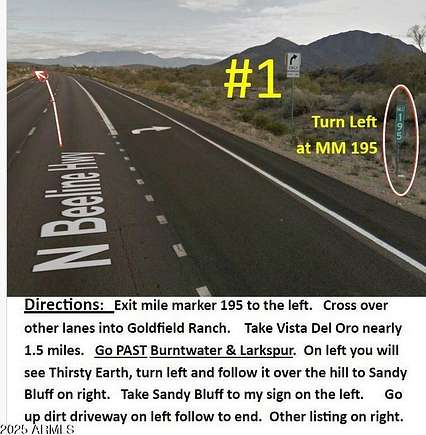 87 to mm 195 turn left cross 87 onto Vista Del Oro. Take 1.5 miles. Go past Burntwater, Turn left on Thirsty Earth, then right on Sandy Bluff. Lot is on your left. (Easy directions in Docs tab!