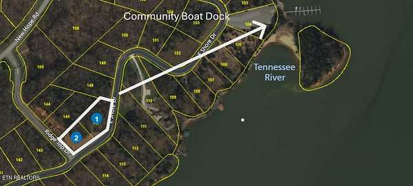 I-40 W exit 350 turn left, go under freeway to Hwy 70 turn right. Go 3 miles to Left on Caney Creek Rd, continue across the bridge go 2.2 miles to dead end. Turn left at New Hope Rd, go 1 mile into the subdivision. Continue past club house and horse barn, turn Left on Ridge Top, go through the gate. Lots start on the left just before the corner of Ridge Top & E Shore and 147 is all on E Shore.