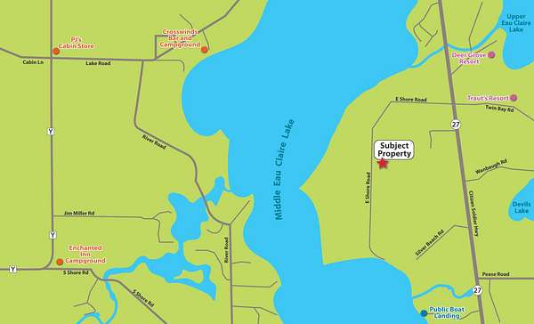 From Hayward: Head northeast on US 63N, turn onto WI 27 N/W 77W, turn right onto 27N, turn left onto E Shore Road (look for the signs from Thousand Lakes Realty) From Gordon: Head South on Finstad Lane, turn left onto County Road Y, then turn left onto County Highway Y/County Road Y, turn right onto Lake Road, turn left onto WI-27S, turn right onto E Shore Road.(look for the signs from Thousand Lakes Realty)