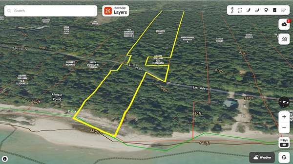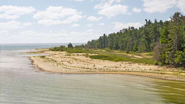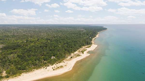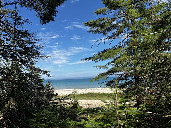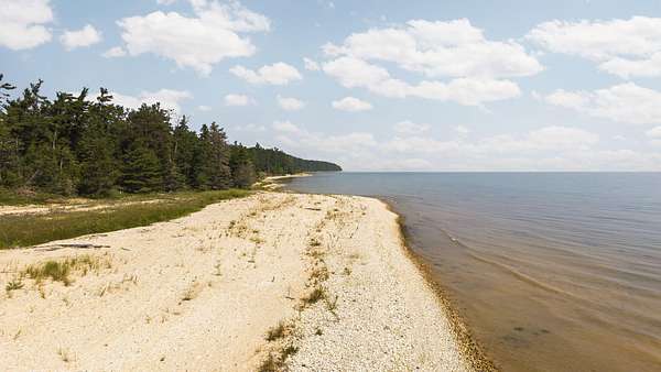 Beaver Island's Martin Point; Stunning 12 acres of pristine beauty. Nearly 200 feet of east-facing beach frontage on Lake Michigan's shoreline. High building site provides panoramic easterly views, stunning sunrises, a gentle walkout to the beach, and a perfect setting for your dream home or a recreational retreat. Mature oak, maple, and evergreens stand watch as Lake Michigan rises into view at the home site. The land across the road is ideal for whitetail, turkey and upland bird hunting, and adjoins thousands of contiguous acres of state lands. Located only five minutes to Lake Geneserath, the Island's most productive inland fishing lake, with trophy class walleye, smallmouth, and more. Tranquil island life starts with this exceptional piece of real estate, where land and water meet.