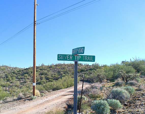 US-60 east exit 214, North on Queen Anne for 4 miles to stop sign. Right on Queen Valley Drive then left on Catherine St. Follow dirt road north for 3.2 miles then right on Silver Tip.