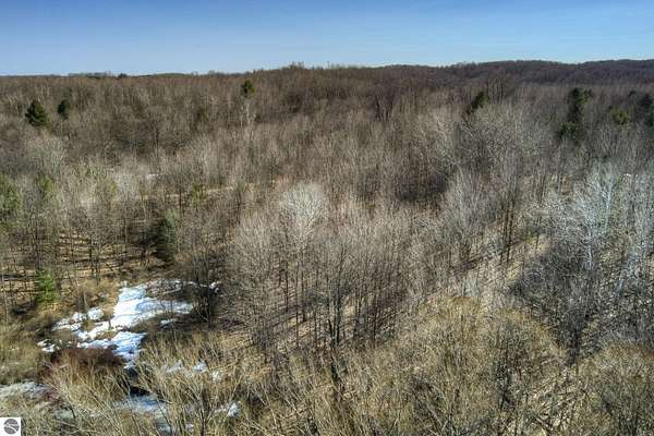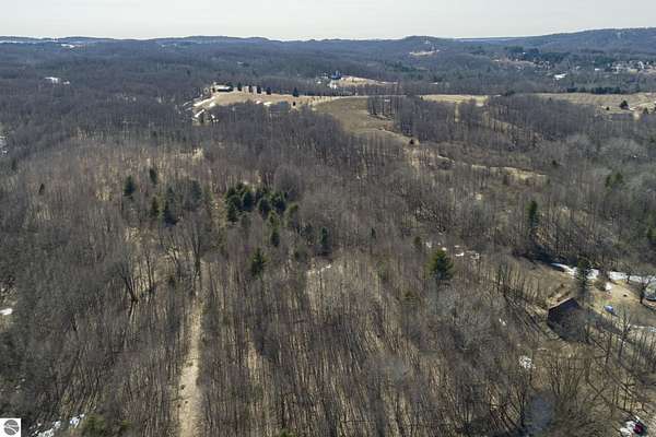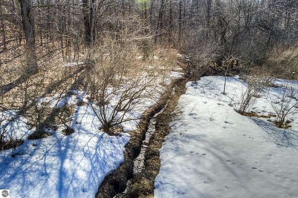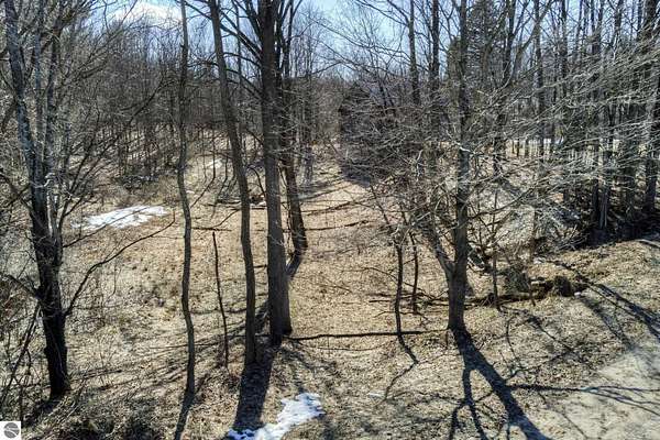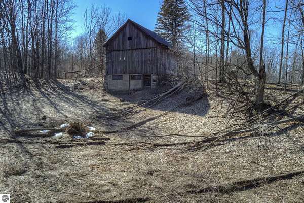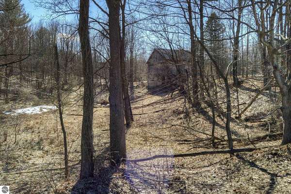 Enjoy your own slice of Northern Michigan paradise: 12 beautifully wooded acres in Elmwood Township, rich with mature hardwoods, natural privacy & a small creek meandering through. This is more than just land; it’s a blank canvas for your vision. Whether you imagine a peaceful cabin tucked among the trees or a stunning dream home surrounded by nature, you get to choose the perfect setting. Wake up to birdsong, watch wildlife wander through your property, and experience the quiet beauty of every season—all while being just minutes from town. An old 2-story barn adds character and potential and the property is approved for a conventional septic system, making your building plans even easier to bring to life. Corners marked and ribbons on nearby trees to help navigate. A 'U' drive up to barn: Caution - Unknown Condition