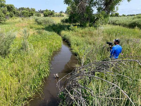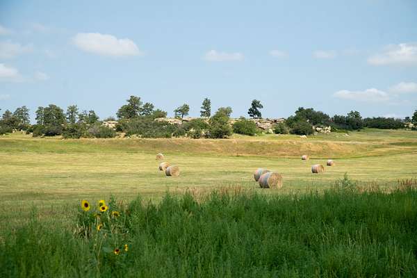 The ranch harvests hay on 185 acres of dryland and sub-irrigated meadows. The balance is grazing land. The ranch holds rights on the East Cherry Creek Alluvium to irrigate and has an irrigation pond and irrigation equipment, though not currently in use.
