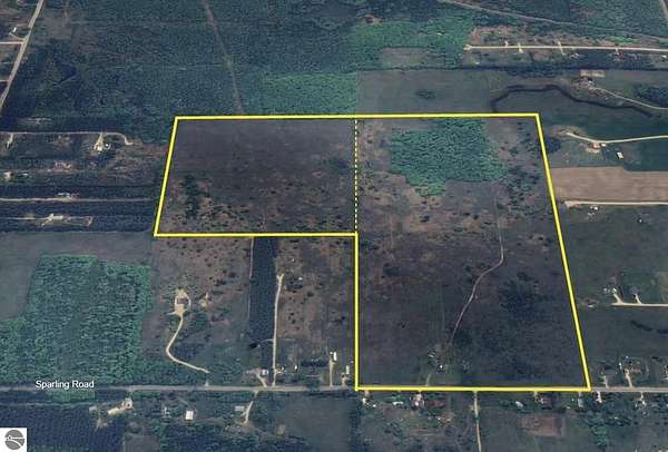 From the intersection of M 113 and S Brownson Ave head South on S. Brownson 1 mile to Sparling Road. Turn left (heading East) approximately .3 Miles. Property is on the South side of road.