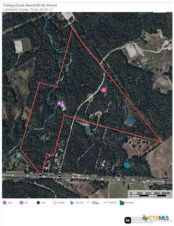 The Turkey Creek Ranchette is an ideal recreational getaway located 1-hour from Waco and 2 hours from Houston, Austin and DFW. The property is 95% heavily wooded with over 2,000 feet of the live-water Turkey Creek that traverses the western boundary. The other 5% of the property is cleared open native pastures ideal for hunting deer, hogs, and predators with ATV trails that connect those pastures and provide access to the majority of the property. There is a large pond stocked with fish and fed by a wet-weather creek and draws from the elevation at the northeast corner of the property. The pond is also frequented by wood ducks and other migratory waterfowl There is a 720 sqft 2 BR 1 Bath cabin, carport and three 20' shipping containers located on the northeast high ground, all supported by a water well into the Carrizo-Wilcox Aquifer and Navasota Valley Coop electricity. There is an active natural gas production pad on the southwest corner of the property with a 500 sqft metal garage with dual roll-up doors and an all-weather service road that traverses down the center of the property from north to south. There are two property entrances along State Highway 164. Property is partially fenced and ag-exempt. No seller-owned minerals.