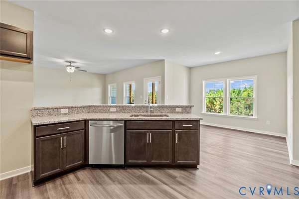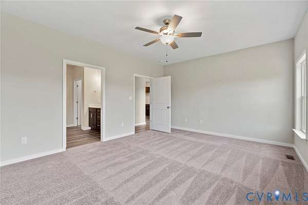 - Bath In Primary Bedroom, Bedroom On Main Level, Breakfast Area, Ceiling Fans, Dining Area, Double Vanity, Eat In Kitchen, Granite Counters, Kitchen Island, Main Level Primary, Pantry, Walk In Closets