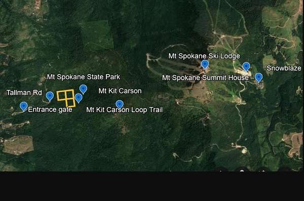 Est $642/molot 3 of 3 Ten acre Parcel at the foothills of Mt Spokane beautiful Mt Kit Carson close to the border of Mt Spokane State Park This easy access remote location behind locked gates is host to abundant wildlife, vegetation, trees and views. Call for details.
