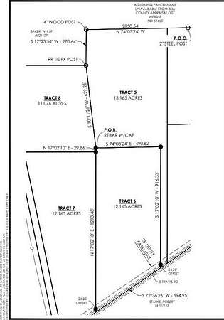From Holland Texas take East Travis Road. Go past Sports Park - property is on the right. Corners marked with T-Post and survey tape.
