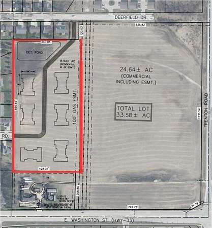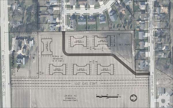 Est $3,772/moIncredible development opportunity. West half is currently zoned Two- Family Residential and east half is zoned Multi- Family Residential. Possible rezoning of Two- Family to Multi- Family. Road access from both Deerfield Dr. and E Sandy Acre Rd. Property is part of a 33.58 acre parcel, subject to land division. Lot lines and acreage are approximate. Utilities located on Deerfield Drive and Sandy Acre Rd. See zoning map and TIF districts in docs.