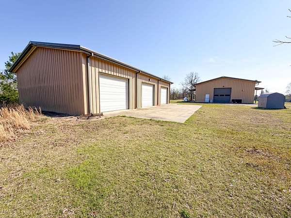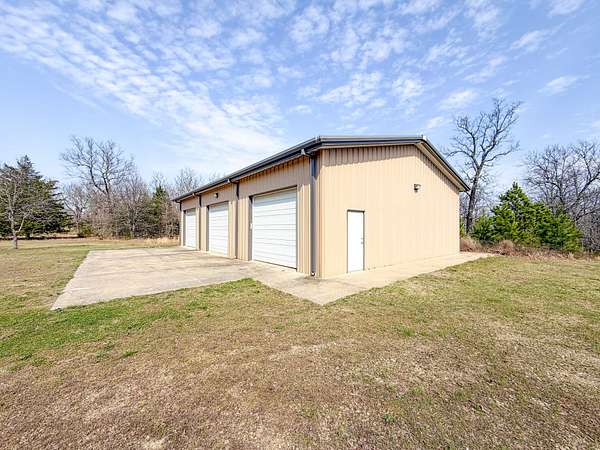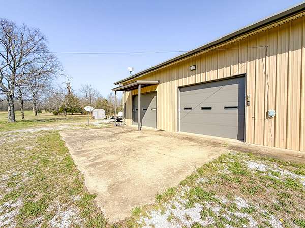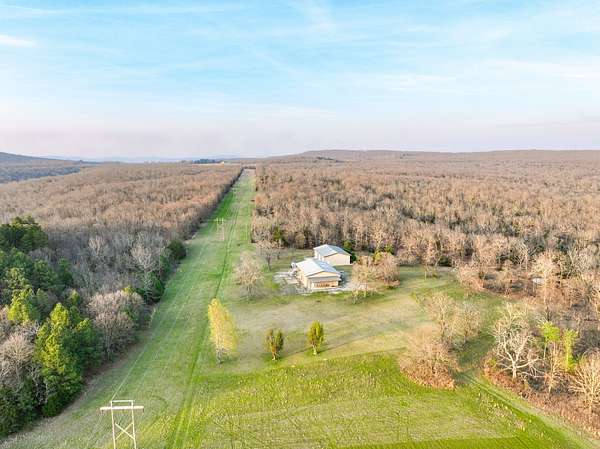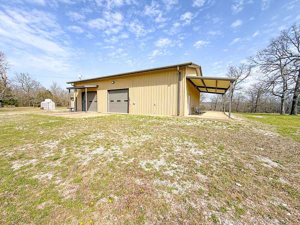 Situated in the scenic hills of Sequoyah County, this 320 ± acre Brushy Creek Hunting Camp offers a private setting with a diverse mix of habitat! The property also includes existing improvements that make it a true turn-key recreational tract. The land is primarily covered in mature timber, with a mix of hardwoods and pine, along with strategically placed clear cuts and established food plots that create ideal conditions for wildlife. The rolling Ozark terrain provides great views and natural vantage points, while native grass bedding areas are scattered throughout to enhance the overall habitat. At the center of the property sits a versatile barndominium featuring a full kitchen, bathroom, and an open studio-style layout with a loft that can serve as a bedroom or additional storage. Whether you're looking for a hunting cabin, weekend getaway, or even a full-time residence, this structure offers plenty of flexibility. A separate garage provides additional space for equipment and storage. The property is accessed via a deeded easement and opens along a prominent highland cut that runs through the center, with a road following its path for easy navigation across the acreage. Water is abundant here, with Brushy Creek running through the property along with three stocked ponds, providing reliable water sources for wildlife. The combination of water, cover, and elevation supports a strong population of deer and turkey, along with the occasional black bear, making this a premier hunting tract. Located approximately 12 ± miles from Sallisaw, 35 ± miles from Fort Smith, Arkansas, and 41 ± miles from Tahlequah. If you're looking for a large, private tract with diverse terrain and solid improvements, this Sequoyah County property is worth taking a look at! All showings are by appointment only. If you would like more information or would like to schedule a private viewing please contact Jacob Lemons at (918) 271-8384 or Jay Cassels at (918) 617-8707 . Disclaimer: The boundary lines shown are approximate and are provided for general reference only. Arrowhead Land Company makes no representations or warranties, express or implied, as to the accuracy, completeness, or reliability of those property lines. Buyers are advised to obtain an independent survey to verify exact property boundaries.