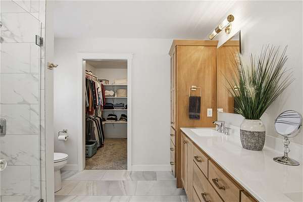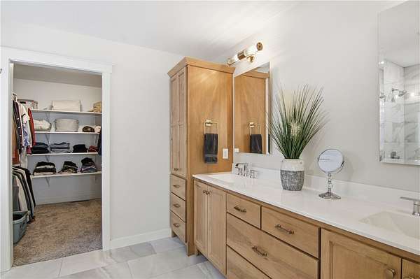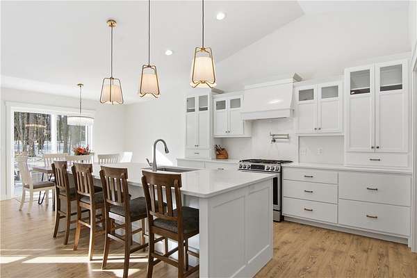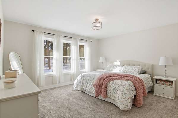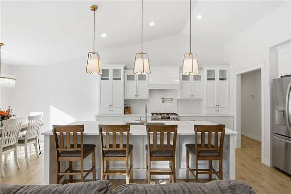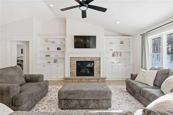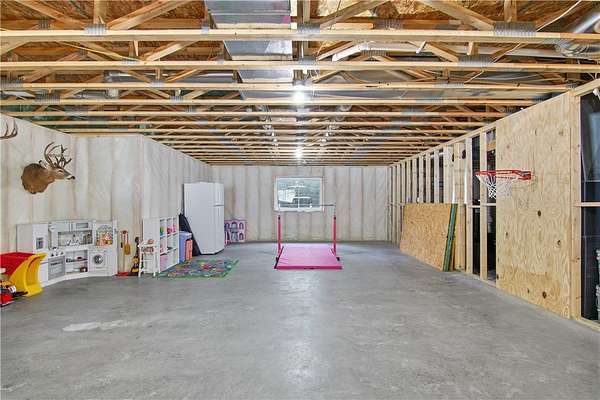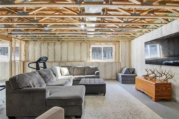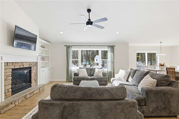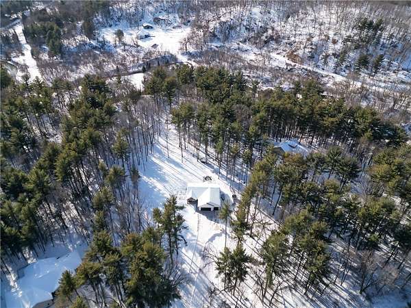 Beautiful home set back on 4.4 acres with access to Elk Creek, located just minutes outside of Eau Claire. Wooded lot with walking trails and an abundance of wildlife. Home features open concept living featuring fireplace with built cabinets and vaulted ceiling. Redwing Custom Cabinetry & flooring throughout. Custom kitchen with quartz countertops and spacious walk in pantry. Owner suite with walk in closet and tiled shower. Attached 3 car garage that is insulated with heater. Separate first floor laundry off mudroom with custom cubbies, cabinets and hanging racks. Lower level unfinished but set up for 2 bedrooms, family room and full bath. Fantastic home that is in like new condition.
