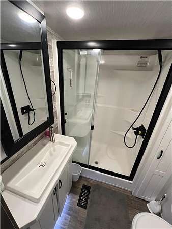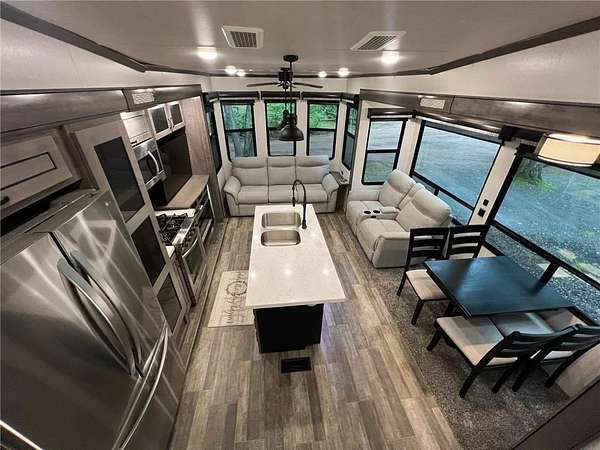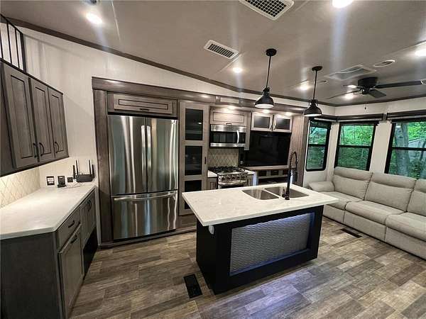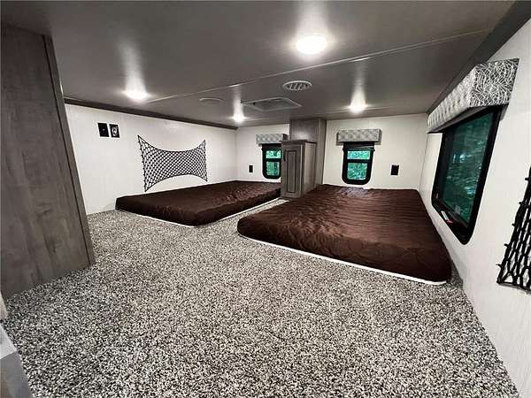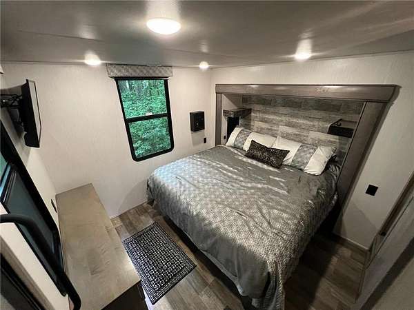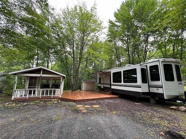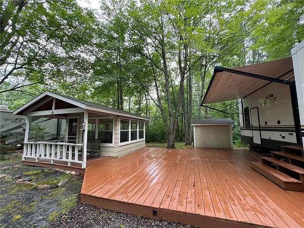 Northwoods Retreat in Pathfinder Village - 2021 Cedar Creek 40CDL with Screen House & Shed Located in the desirable Pathfinder Village, 50 amp service, this beautifully maintained 2021 Cedar Creek 40CDL destination trailer offers the perfect Northwoods escape! Set on a private, wooded lot, this property is ideal for those seeking peace, adventure, and low-maintenance seasonal living. Inside, the Cedar Creek features a spacious, residential-style layout with a private loft bunk room, master bedroom with king bed, dual lofts, and a large bathroom--perfect for families or hosting guests. The kitchen is fully equipped with solid surface counters, full-size appliances, and ample storage. Large windows and high ceilings create a bright, open living space with all the comforts of home. Step outside and enjoy the outdoors in your 12x12 finished screen house, ideal for relaxing bug-free evenings. A storage shed is also included for your tools, toys, or extra gear. Enjoy your morning coffee on the deck, explore the walking trails, or connect with the welcoming Pathfinder community. Whether you're looking for a weekend getaway, summer retreat, or seasonal home base, this turnkey setup is a rare find in a highly sought-after location.