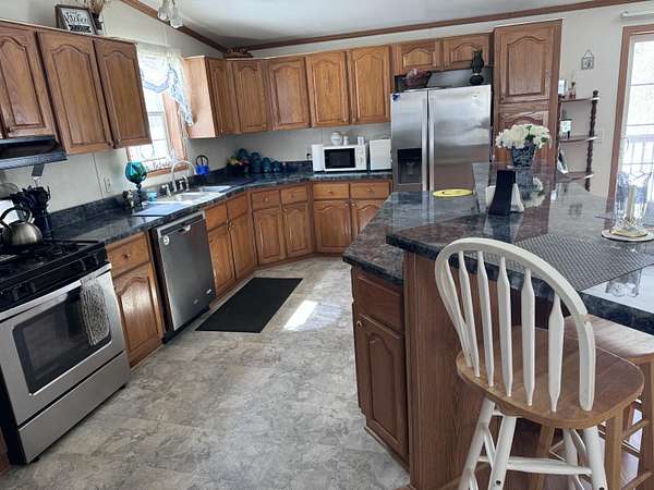 Est $2,266/moThis is an impeccable 2001-02 manufactured 3 bedroom home (one bedroom converted into a workout room), a garden tub in the spacious master bathroom, and a generously sized dining room, living room, and kitchen area. The home also includes geothermal heat, air-conditioning, a gas fireplace and furnace boasting a second source of heat, and a Generac generator for immediate electricity when the lights go out. The 4.2 acre property (within the Village Limits) includes a 2 car detached garage with second floor storage and an additional detached storage unit.