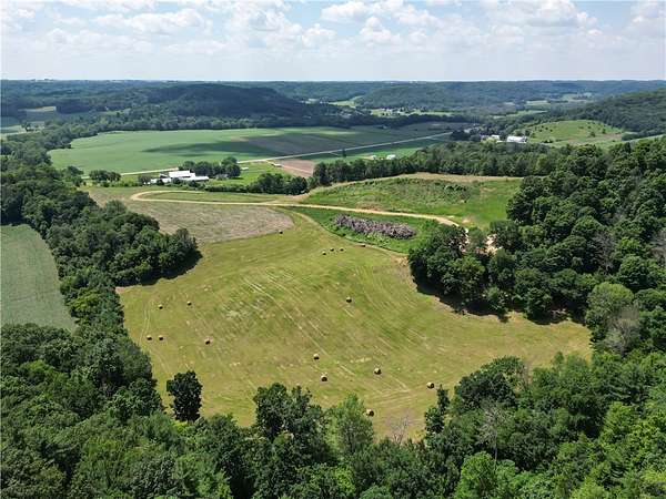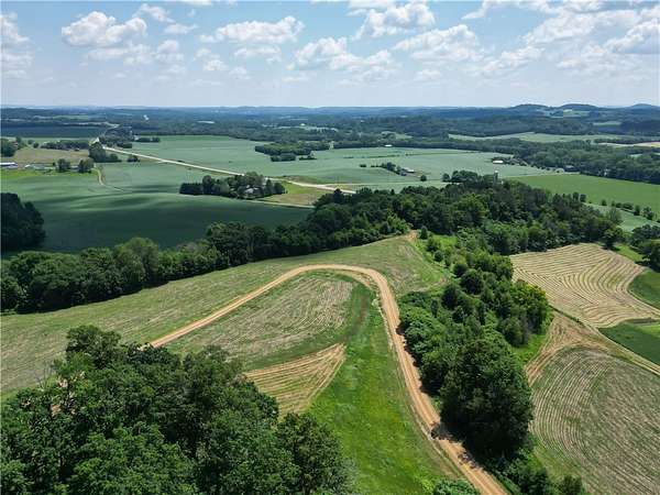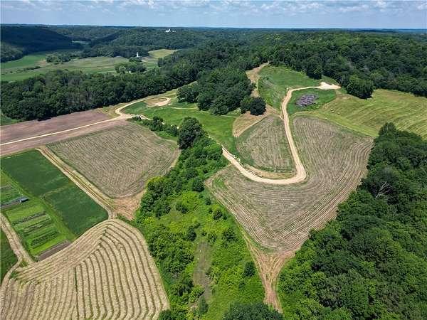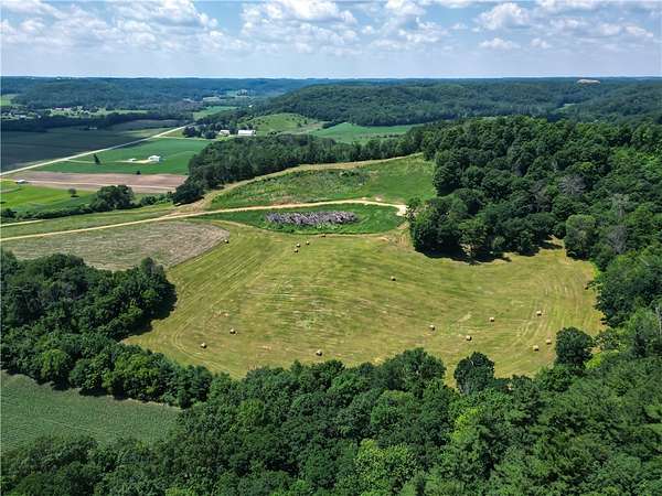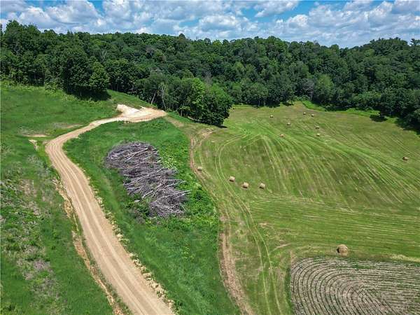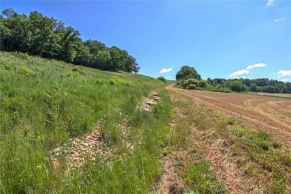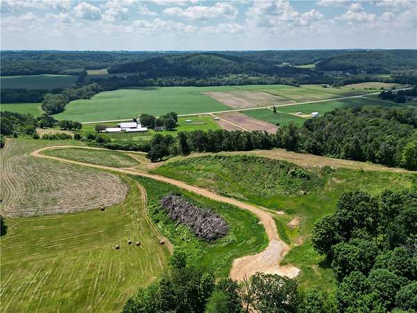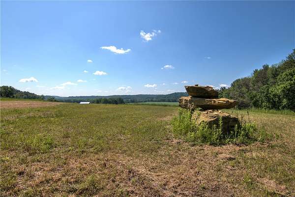 Only 6 miles from downtown Menomonie, this 56.92-acre parcel of land offers spectacular views of the valley leading into town and offers many options for possible building sites. A shed at the base of the property provides excellent storage and can accommodate a medium-sized tractor. The top plateau, at the highest point of the property, sits 300 feet higher in elevation than the front driveway entrance. The property is actively farmed, w/15 acres of tillable fields and an additional 5 acres of hay fields. These farm fields currently generate an annual rental income of $2525. The soil is dark and rich, producing excellent crop yields and attracting diverse wildlife. A healthy whitetail deer population thrives on the property, with impressive bucks frequently sighted each fall. The stunning views from multiple vantage points offer numerous options for building your dream home and farm.
