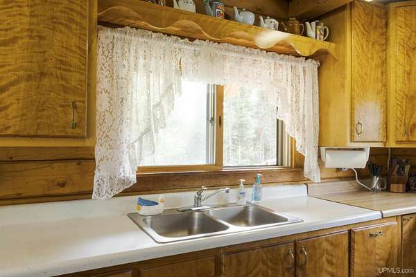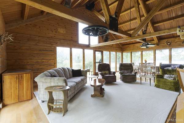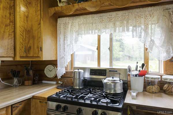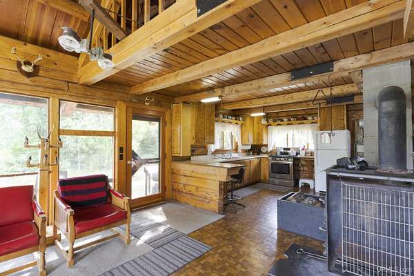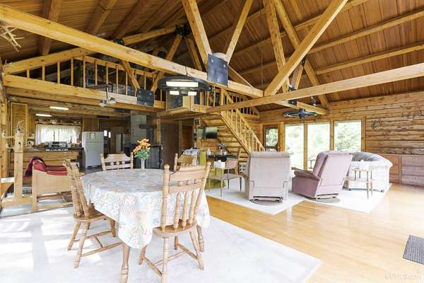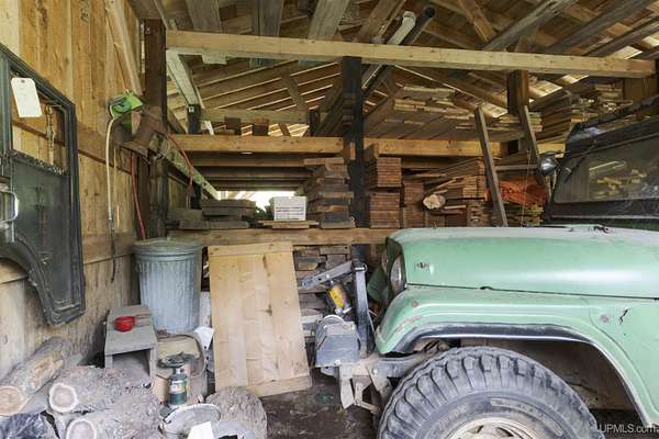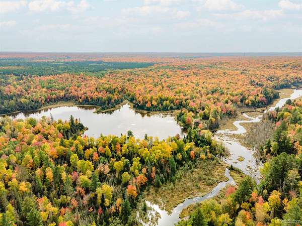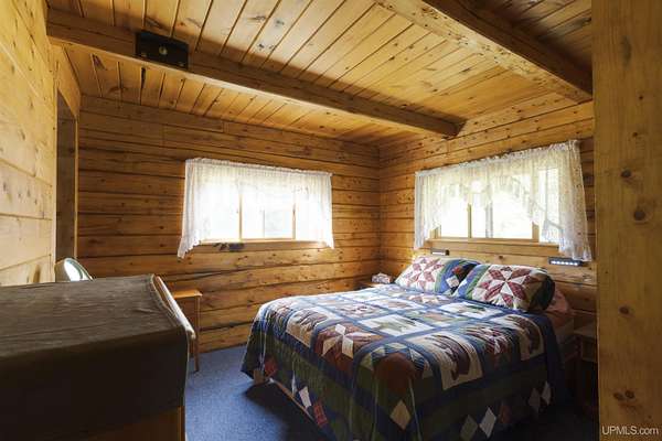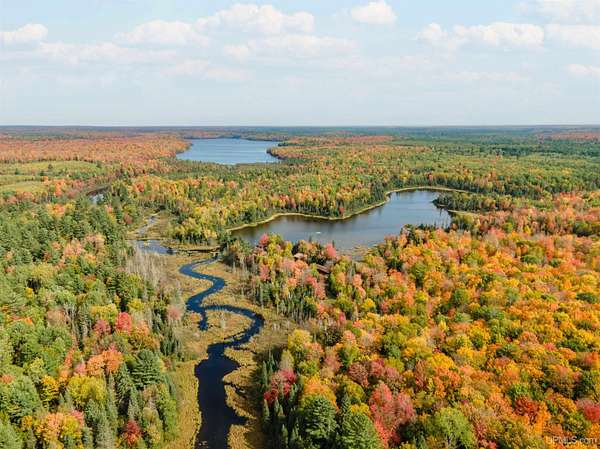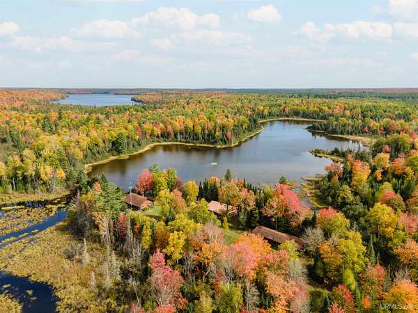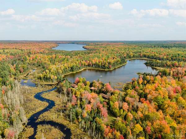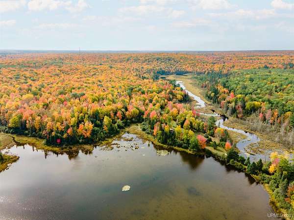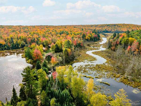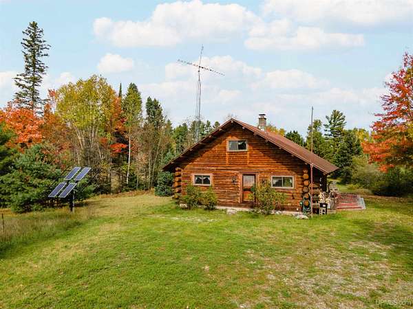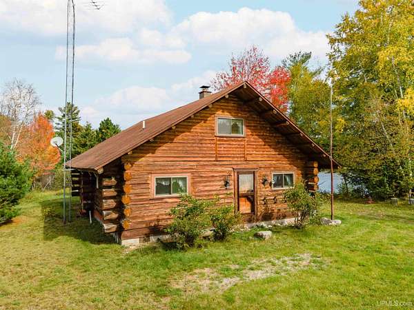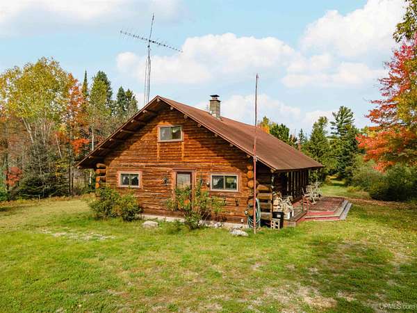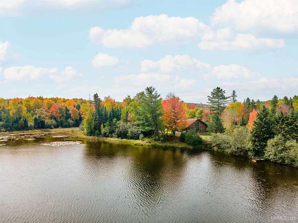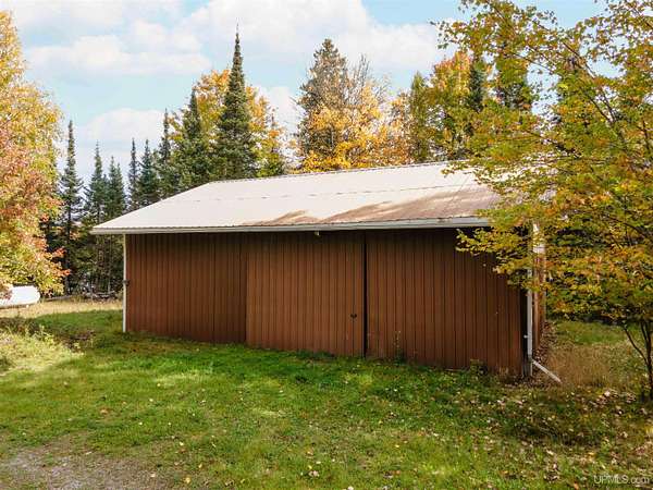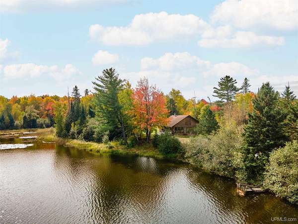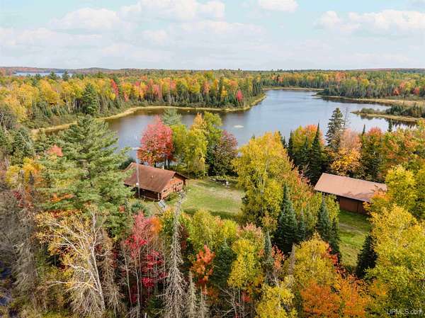 Discover 273 acres of private wilderness in Michigan's western Upper Peninsula! Hunting enthusiasts will appreciate healthy population of Grouse, Turkeys, Waterfowl, and other small game, as well as trophy hunting for big game such as Whitetail Deer and Black Bear. The property hosts a wide variety of other wildlife, including Swans, Bald Eagles, Moose, Bobcats, etc. Access to an abundance of exceptional fishing opportunities for Trout and other species, are available on and within close proximity to the property. The land adjoins Ottawa National Forest on two sides and includes its own spring-fed pond, fully encompassed by the land, feeding into Cherry Creek and on toward Tamarack Lake. There are trails throughout the property and you can canoe and kayak on the pond. Many species of trees grow on the property, including Pine, Spruce, Balsam, Birch, Oak, Maple, Cherry, and Tamarack. Some of these trees were harvested and used in the construction of the cabin and out buildings. Kitchen cabinets are made from stunning Curly Yellow Birch that was harvested on the property. The open-concept cabin includes 1 bedroom, a large loft which accommodates 5 beds, 1 bathroom, and a kitchen. The cabin is heated with a wood-burning stove and is powered with solar/generator power (electrical power is available at the Forest Service Road). Propane gas is used to service the range, refrigerator, and water heater. Supporting the cabin are two outbuildings: The first is a large fully enclosed pole barn, with a nice-sized workshop, ideal for keeping tools, ATVs, or boats safe from the elements. The second structure offers a mix of a closed garage space with additional open storage.
