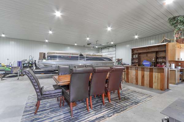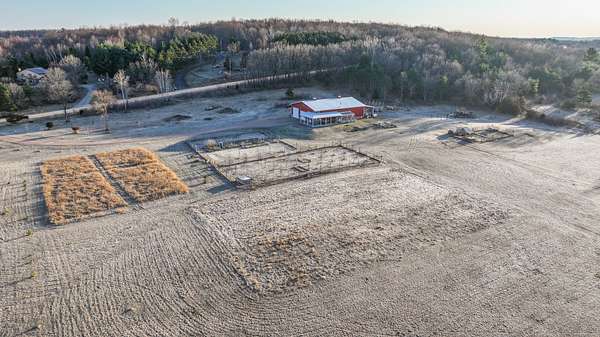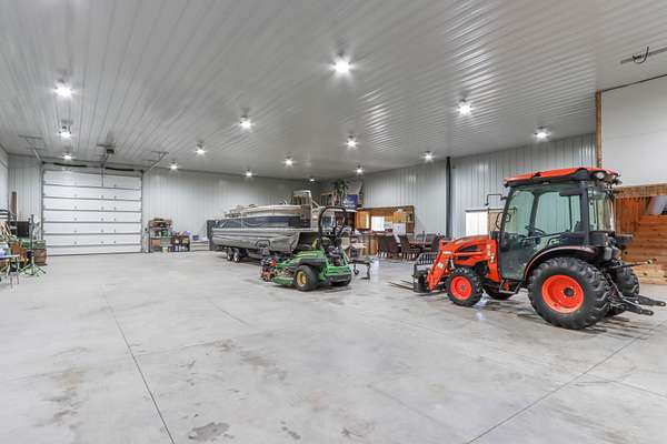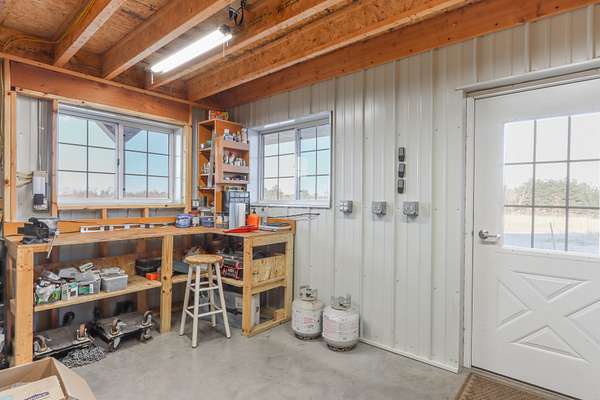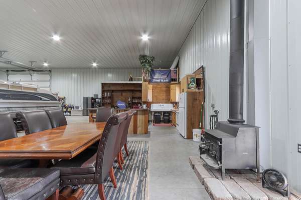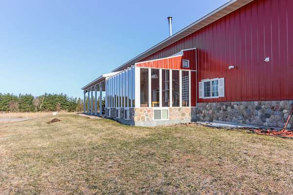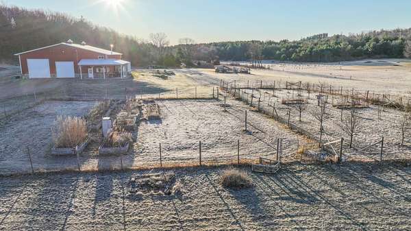 A 60 x 80 pole building anchors the property with an interior that includes in floor heat, wood stove, kitchen, full bath, and lofted space. It functions as a true basecamp for the land. The attached 12 x 22 greenhouse, 30 x 50 covered porch, and 20 x 24 lean to extend its use well beyond storage or workspace.