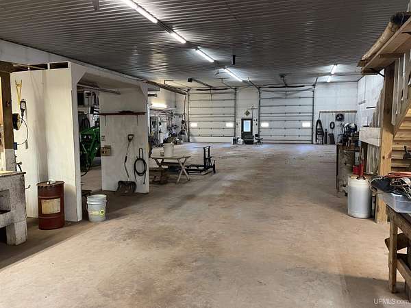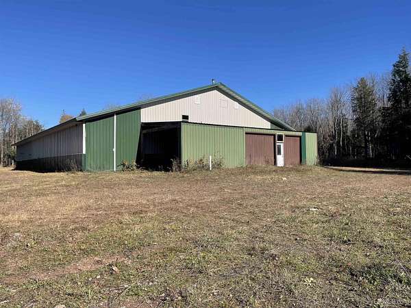 So many possibilities with this unique property. This 2+ bedroom home offers main floor living with an open concept layout. The kitchen features ample cabinet and countertop space and is open to the dining area and living room. The newer addition provides a spacious family room. The home also includes a large bathroom with washer and dryer hookups. One of the original bedrooms is currently being used as a large pantry but could easily be converted back, making this a potential 3-bedroom home. The property includes an impressive collection of outbuildings, a 78'x100' building equipped with an office, three lavatories, a hoist with air jacks, air compressor, welder, 14' overhead doors, and 16' ceilings. Additional structures include a 24'x60' building previously used as a wood shop with an attached 12'x60' lean-to, a sauna building with a whirlpool tub and double shower, an 18'x34' wood burner building, a greenhouse, and multiple storage sheds. all this situated on approximately 86 acres, offering ample space for a variety of uses. Whether you need storage for large equipment, campers, or boats, or you're looking for acreage for recreational use or hobbies, this property provides exceptional value and versatility. Buyer to verify all measurements including acreage and square footage of the home and all buildings.