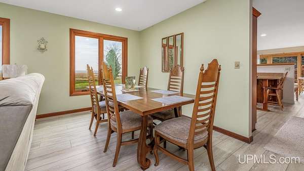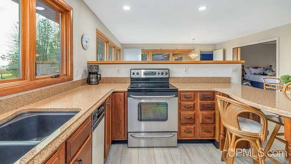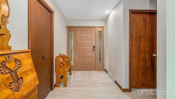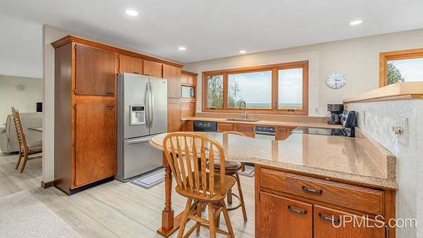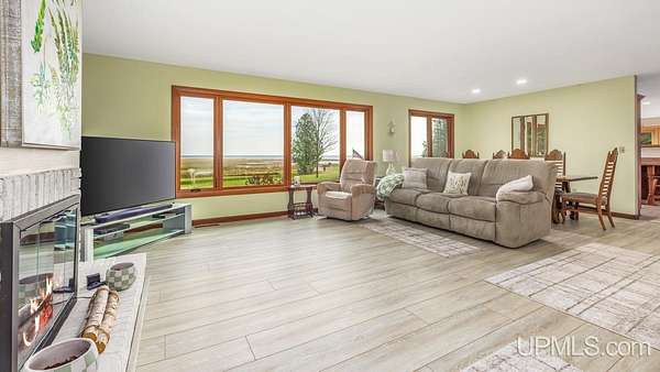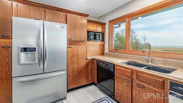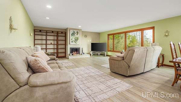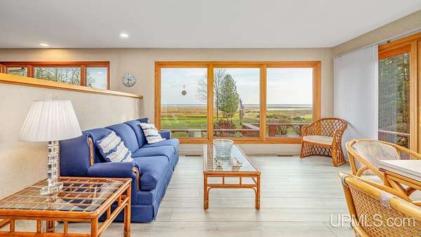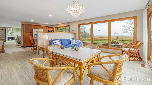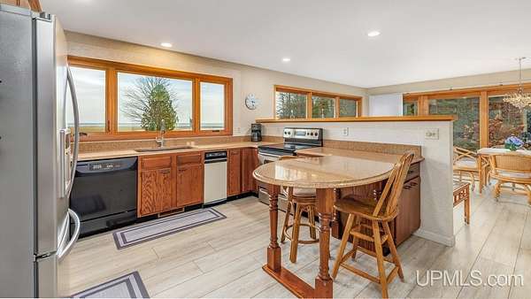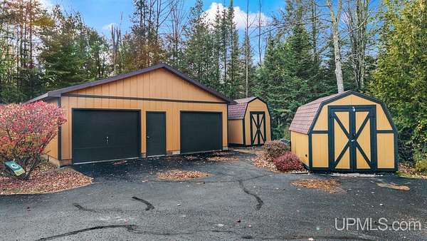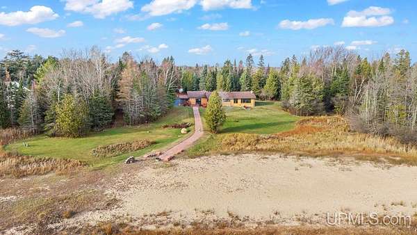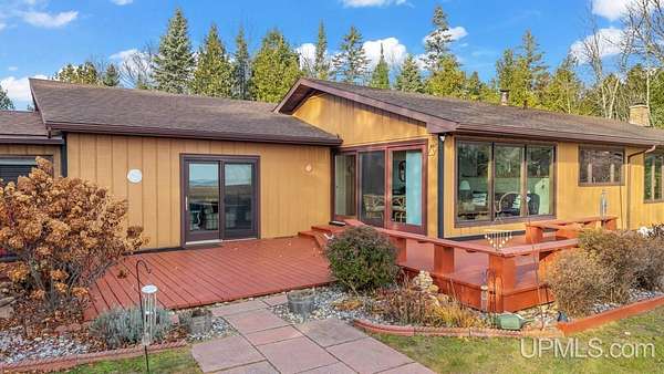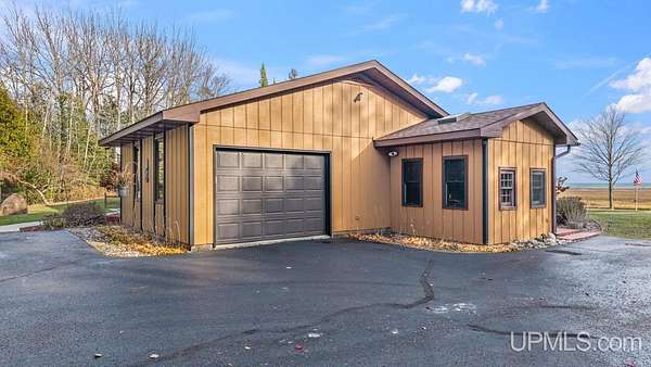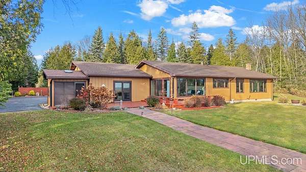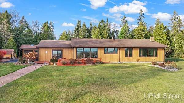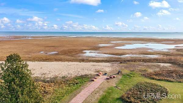 Secluded and stunning, this two-bedroom, two-bathroom home boasts 320' of pristine sand beach frontage just minutes from Escanaba. Inside, the home is as inviting as it is beautiful. From the welcoming foyer, enjoy instant, breathtaking views of Lake Michigan that continue throughout the open-concept living space. The home offers seamless access to the deck and beach, making it an ideal spot for entertaining and gatherings. The kitchen features granite countertops and a large window overlooking the lake, while an adjacent versatile space--bathed in natural light from a massive picture window and oversized patio doors--can be used as a dining area, office, or sitting room. Additional highlights include an attached garage, a spacious detached garage, and two storage sheds, providing plenty of room for vehicles, toys, and more.