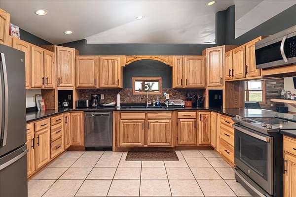 This 3600sf spacious home just outside of Viroqua, Wisconsin features an ideal layout for entertaining with all amenities on a single level with zero entry. The modern design open concept floorplan is set up beautifully to allow privacy with bedrooms on both ends of the home and a separate living space connected to the walkout patio room on the back side of the home that leads to a large, multi-level deck with a spectacular panoramic view! Located on 3.0 acres near Duck Egg County Forest, less than 15 minutes from the Mississippi River, and just a few minutes from Newton Valley with world class trout streams in the West fork of the Bad Axe River. A 36x34 finished/heated garage, plus another 16x24 adjoining garage space. The backyard has a nice firepit area and a concrete sport court too!