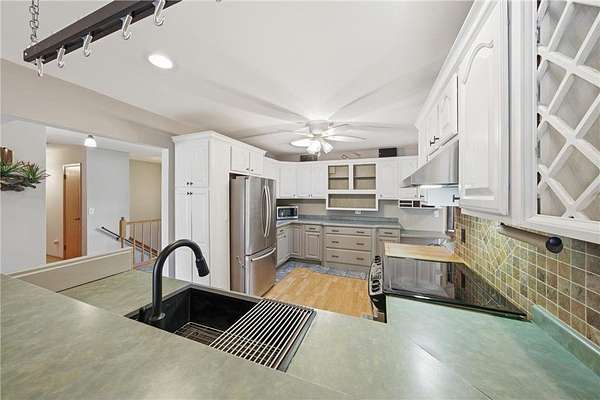 Step inside to a spacious open-concept layout that seamlessly blends the living, dining, and kitchen areas, all designed to maximize stunning views of the lake. The beautifully updated kitchen boasts modern finishes and ample counter space, making it perfect for cooking and entertaining. Whether you're preparing a casual meal or hosting guests, you'll love the functional layout and the inviting atmosphere.